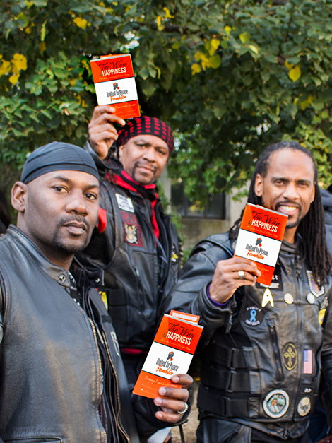 Поскольку множество байкеров являлись членами соперничающих банд и клубов, их объединение было первым шагом к примирению. Первый заезд состоялся в октябре 2012 года и имел огромный успех. Молва быстро распространилась и к движению присоединилось больше групп. Каждый месяц «Заезды во имя мира» направлялись в разные районы, где свирепствовало насилие, включая печально известные Комптон, Карсон, Лонг-Бич и Уоттс. На каждой остановке, они раздавали брошюры «Дорога к счастью», выполненные по индивидуальному заказу.